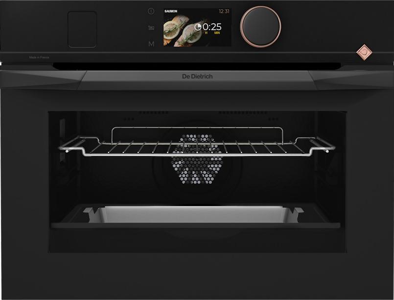 Компактная встраиваемая духовка с независимым подключением принадлежит к новой коллекции бытовой техники PHILHARMONIE, которая призвана продолжать традиции французской высокой кухни. De Dietrich — одна из старейших французских торговых марок, известная с 17 века: современная техника отдает дань своему наследию, классическим образцам, изготовленным в Орлеане и Вандоме. Каждая модель — образец совершенства как снаружи, так и внутри. Дизайн Infinite Black означает, что фасад выполнен в универсальном черном цвете из закаленного стекла с небольшими деталями из нержавеющей стали и меди. Духовку отличает камера объемом 40 литров с тремя уровнями приготовления. Потребляемая мощность составляет 3,5 кВт. Холодная дверца имеет четыре слоя остекления, она закрывается беззвучно и плавно благодаря доводчику. Сплошное внутреннее стекло можно снять, чтобы очистить его отдельно.
