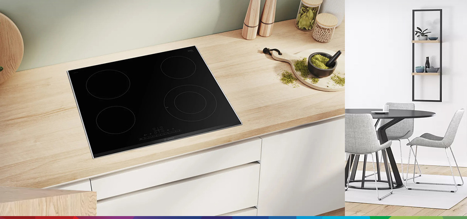 В электрических и индукционных сериях Bosch управление строится на сенсорных элементах. Вместо привычных поворотных переключателей используются панели слайдерного типа, где достаточно провести пальцем по шкале, чтобы изменить мощность нагрева. Такой подход дает точную регулировку и избавляет от износа механических деталей.