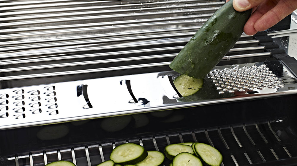Мультитерка универсальная состоит из стальных прутьев и терки, соединенных по периметру.