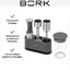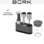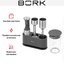 Блендер Bork B784 — погружная модель мощностью 320 Вт и весом всего 2,5 кг. Корпус серебристого цвета изготовлен из литого алюминия, погружная часть блендера — из прочной, устойчивой к любым воздействиям нержавеющей стали. Комфортному использованию способствует эргономичная нескользящая рукоятка. В комплект входит чаша для измельчения объемом 1 литр, изготовленная из нетоксичного пластика. Пять скоростей работы предназначаются для измельчения различных продуктов. Устройство может работать в режимах измельчения или смешивания: для особо твердых продуктов предназначается турбо-режим. Для плавной регулировки скорости вращения служат кнопки на корпусе. В комплект насадок с надежным магнитным креплением входят венчик для взбивания и насадка-измельчитель. Для хранения предусмотрена удобная подставка.