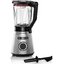 Стационарный блендер Bosch позволяет готовить смузи, коктейли, смешивать соусы и заправки, измельчать продукты до состояния пюре и многое другое. Его конструкция подразумевает автономную работу — вам нужно только положить овощи или фрукты и выбрать режим. Он может как влиться в общую гамму интерьера, так и стать ярким акцентом; доминирующий цвет — серебристый.