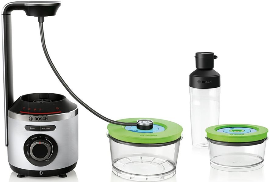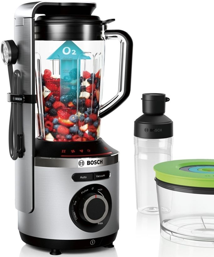 Стационарный блендер Bosch позволяет готовить смузи, коктейли, смешивать соусы и заправки, измельчать продукты до состояния пюре и многое другое. Его конструкция подразумевает автономную работу — вам нужно только положить овощи или фрукты и выбрать режим. Корпус сделан в основном из металла, что повышает надежность прибора. Он может как влиться в общую гамму интерьера, так и стать ярким акцентом; доминирующий цвет — нержавеющая сталь.