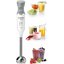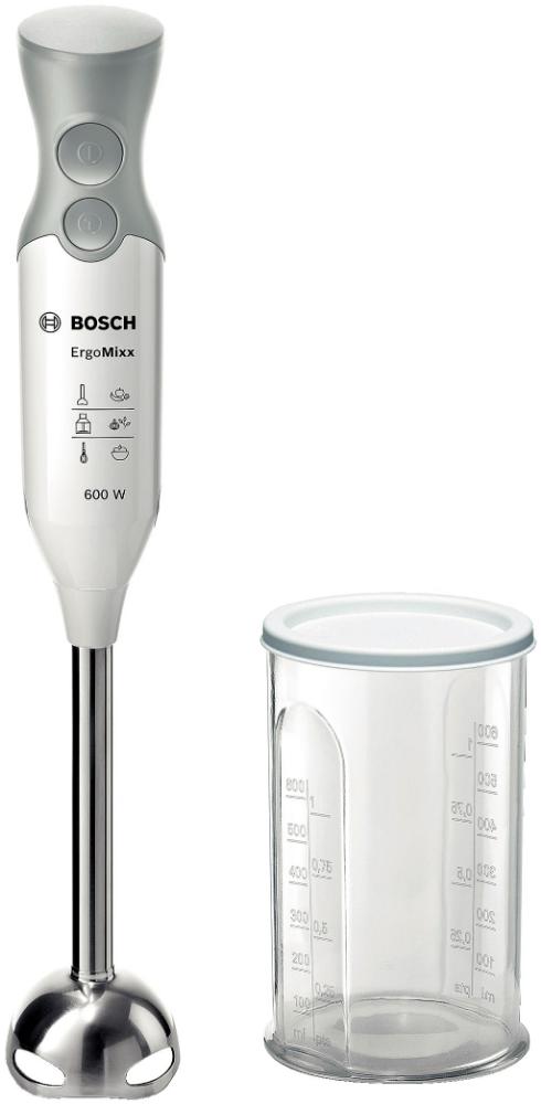 Погружной блендер Bosch позволяет готовить смузи, коктейли, смешивать соусы и заправки и многое другое. Такая конструкция требует вашего участия — нужно держать рукоятку с насадкой и контролировать направление движения. Плюс в том, что можно использовать ее прямо в кастрюле, когда готовите, например, суп-пюре. Корпус сделан в основном из пластика, что уменьшает вес прибора. Он может как влиться в общую гамму интерьера, так и стать ярким акцентом; доминирующий цвет — белый.