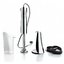 Погружной блендер — устройство, служащее прежде всего для измельчения продуктов, и также для смешивания, взбивания, дробления. Он состоит из корпуса с двигателем, ножки и сменных насадок в нижней части. Насадка-нож погружается в емкость с продуктом, после сего блендер включается для измельчения.