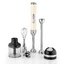Погружной — мотор расположен в рукоятке, на конце которой есть насадка с венчиком или ножами. Вы опускаете ее в емкость и измельчаете продукты, удерживая прибор на месте, нажимая или проводя по кругу.