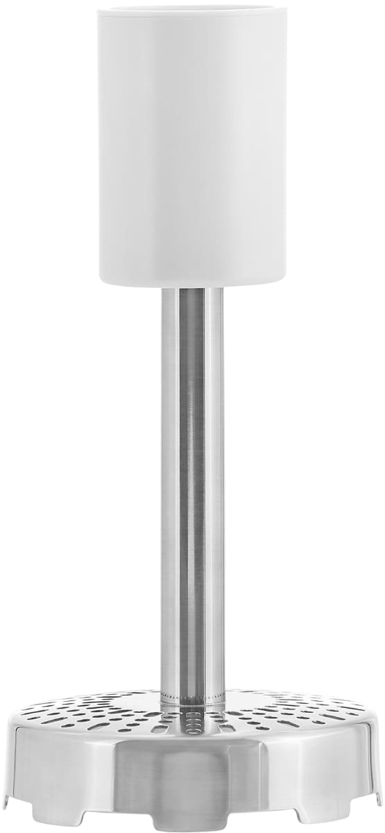 Погружной — мотор расположен в рукоятке, на конце которой есть насадка с венчиком или ножами. Вы опускаете ее в емкость и измельчаете продукты, удерживая прибор на месте, нажимая или проводя по кругу.