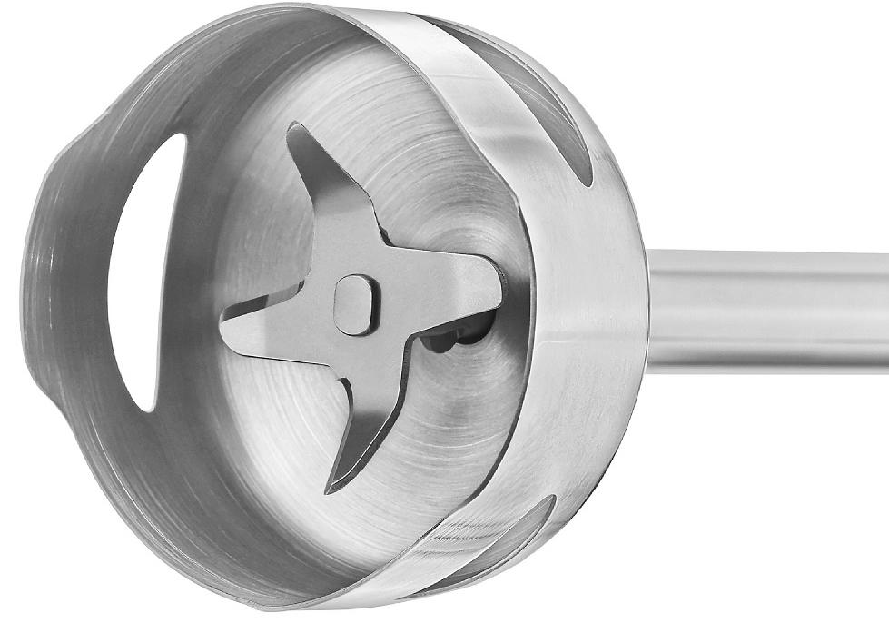 Погружной блендер — устройство, служащее прежде всего для измельчения продуктов, и также для смешивания, взбивания, дробления. Он состоит из корпуса с двигателем, ножки и сменных насадок в нижней части. Насадка-нож погружается в емкость с продуктом, после сего блендер включается для измельчения.