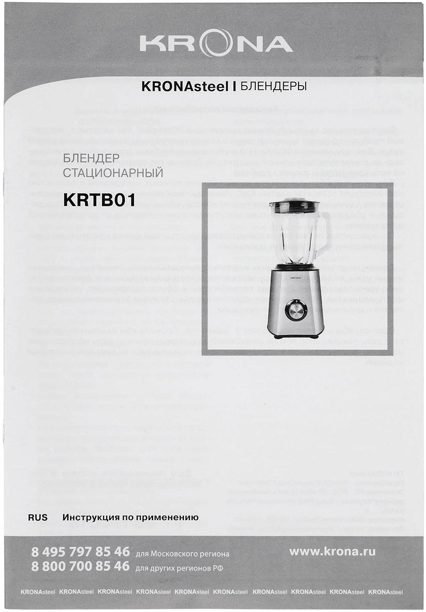 Стационарный блендер KRONA позволяет готовить смузи, коктейли, смешивать соусы и заправки, измельчать продукты до состояния пюре и многое другое. Его конструкция подразумевает автономную работу — вам нужно только положить овощи или фрукты и выбрать режим. Корпус сделан в основном из металла, что повышает надежность прибора. Он может как влиться в общую гамму интерьера, так и стать ярким акцентом; доминирующий цвет — нержавеющая сталь. Благодаря специальным нескользящим ножкам блендер сохраняет устойчивость даже на высоких оборотах.