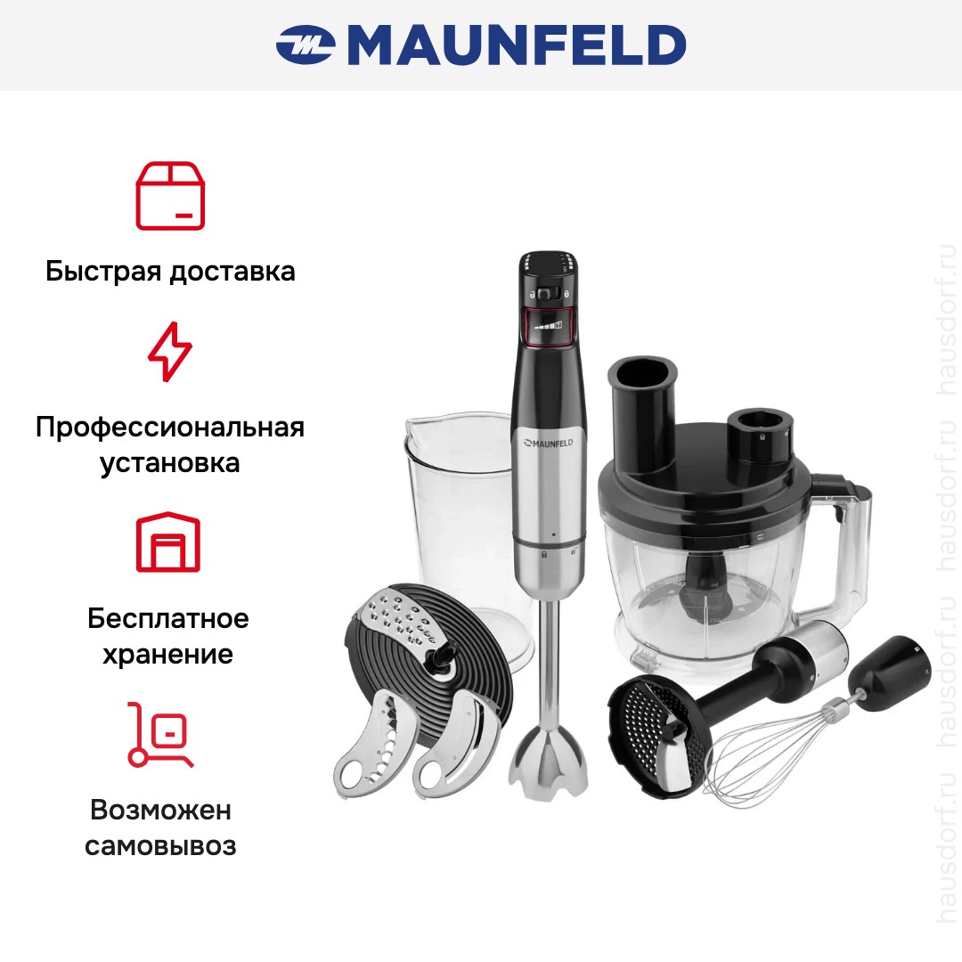 Блендер Maunfeld MF-123SB PRO — мощный и многофункциональный погружной прибор, созданный для тех, кто ценит скорость, точность и безупречный результат в приготовлении разнообразных блюд. С энергопотреблением в 1000 Вт он легко справляется с самыми плотными ингредиентами: от замороженных ягод и овощей до орехов и мяса, превращая их в однородную массу за считанные секунды.