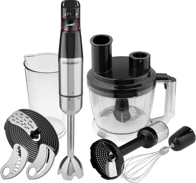 Погружной блендер Maunfeld позволяет готовить смузи, коктейли, смешивать соусы и заправки и многое другое. Такая конструкция требует вашего участия — нужно держать рукоятку с насадкой и контролировать направление движения. Плюс в том, что можно использовать ее прямо в кастрюле, когда готовите, например, суп-пюре. Корпус сделан в основном из металла, что повышает надежность прибора. Он может как влиться в общую гамму интерьера, так и стать ярким акцентом; доминирующий цвет — черный.