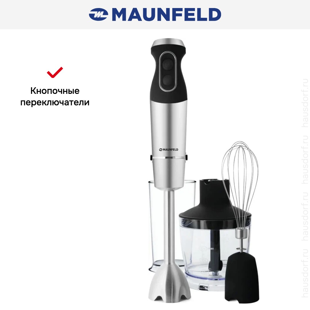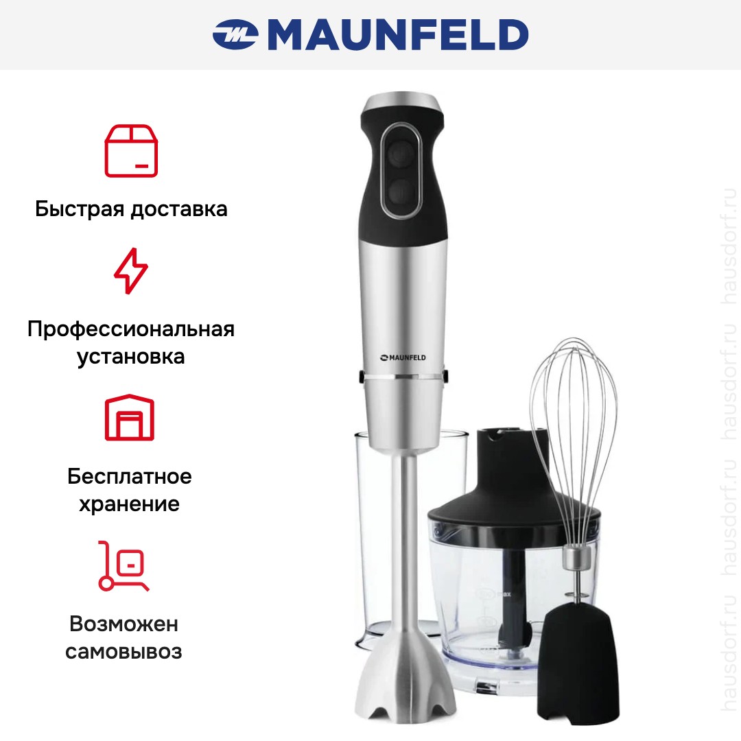Погружной блендер Maunfeld MHBL-1000S представляет собой удачное сочетание стильного внешнего вида и продуманной эргономики. Корпус выполнен из металла, что придаёт прибору надежность и защиту от мелких повреждений. Компактные габариты и вес около 1.68 кг позволяют легко найти место для устройства даже на тесной кухне.