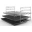 Проволочные направляющие — металлические прутья или решетка, концы которой закрепляются в отверстиях или выемках на боковых стенках рабочей камеры. Они изготавливаются из хромированного металла и выдерживают высокие термические нагрузки. В съемном варианте они легко извлекаются для тщательной очистки под струей воды. Если духовка оснащена такими направляющими, ее покрытие остается неповрежденным, а противни и решетки не застревают при установке или извлечении благодаря гладкому покрытию.