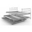Наиболее удобны телескопические направляющие: они представляют собой металлические опоры, на которых противень не только устанавливается в камере, но и может выдвигаться за ее пределы. Они являются наиболее безопасными, ведь пользователю достаточно потянуть за переднюю часть противня, используя прихватку или полотенце, чтобы полностью извлечь его наружу. Более того, благодаря специальному фиксатору противень можно оставить остывать прямо на направляющих. Единственный недостаток этих направляющих — достаточно сложная конструкция, несколько затрудняющая их очистку.