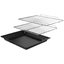 В стандартную комплектацию любого духового шкафа входят один или два противня — эмалированных или с антипригарным покрытием — и решетка. Единственный противень, как правило, имеет низкие бортики и предназначается для приготовления выпечки. Если духовка комплектуется двумя противнями, то второй отличается более высокими бортиками — его можно использовать для запекания мяса, птицы, овощных блюд. На решетке в духовке, не оснащенной грилем, обычно устанавливаются формы для запекания — стальные, керамические или стеклянные. В духовках премиум-класса количество противней может быть увеличено: к стандартному комплекту добавляются противни с перфорацией для мяса, специальные поддоны для сбора выделившегося сока.