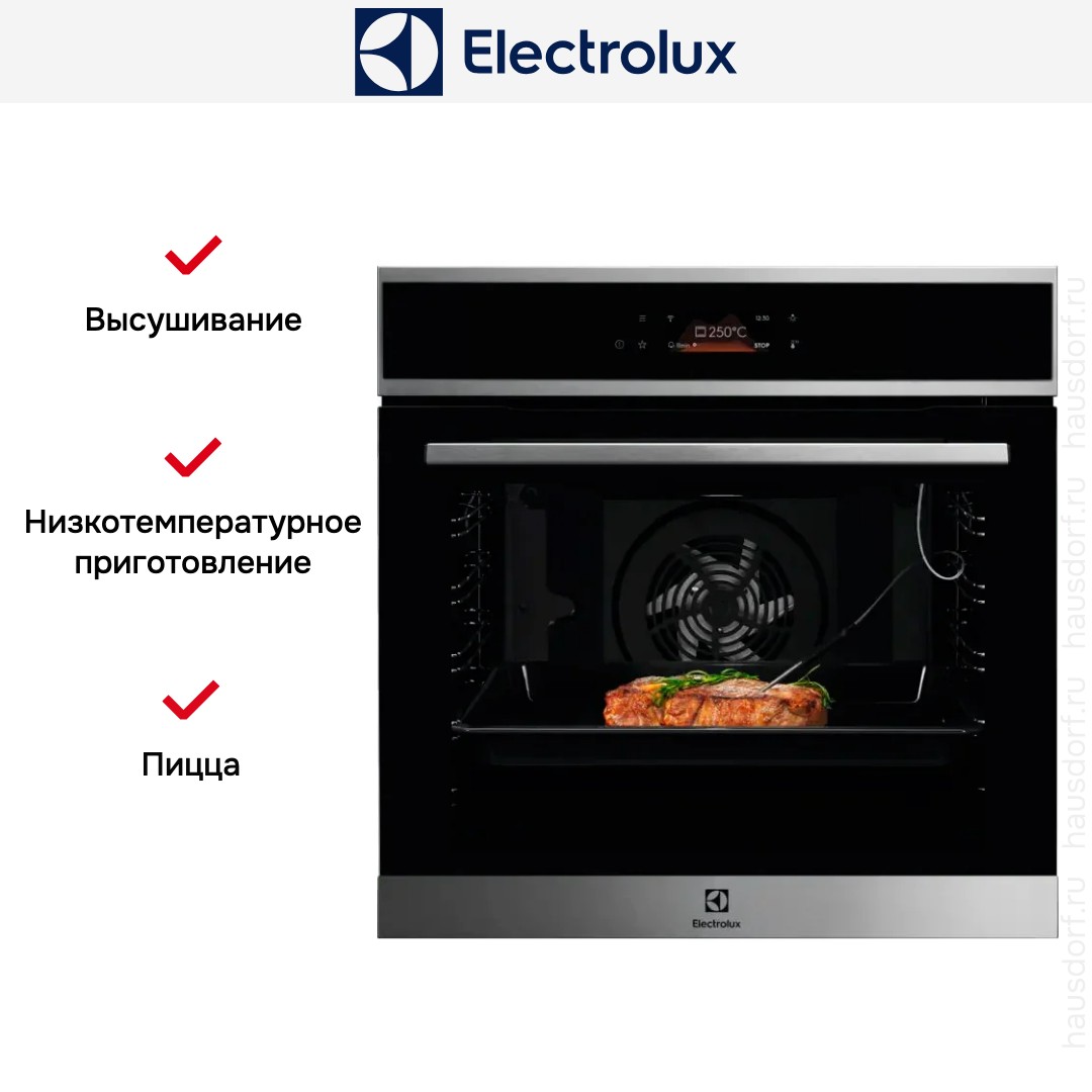 Готовьте свои лучшие блюда и пробуйте новые рецепты с духовым шкафом Electrolux EOE8P39WX! Стандартные размеры и большой объем внутренней камеры — выбор тех, кто много готовит для семьи или частых праздничных встреч с друзьями. Желательно заранее продумать расположение такой модели в кухонном гарнитуре.