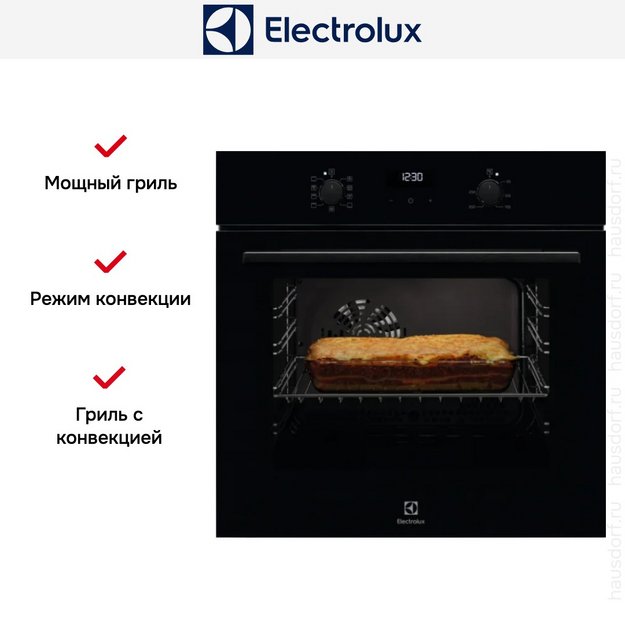 Готовьте свои лучшие блюда и пробуйте новые рецепты с духовым шкафом Electrolux EOF5C50Z! Стандартные размеры и большой объем внутренней камеры — выбор тех, кто много готовит для семьи или частых праздничных встреч с друзьями. Желательно заранее продумать расположение такой модели в кухонном гарнитуре.