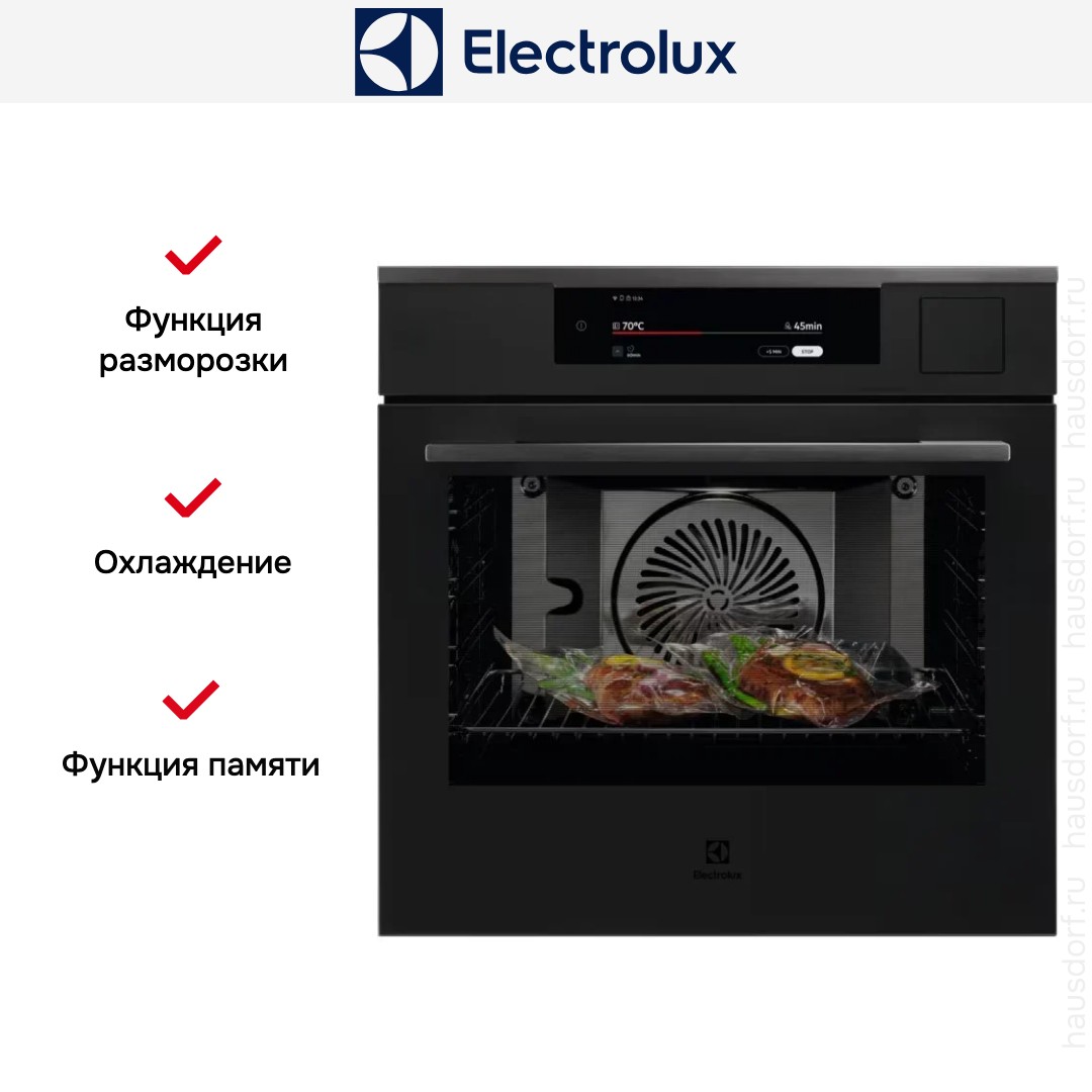 Количество режимов работы в духовом шкафу Электролюкс: 17. В число доступных программ входят: классический нагрев, верхний нагрев, нижний нагрев, конвекция, гриль для создания хрустящей корочки, сушка для овощей и фруктов, и другие. Помимо основных программ воспользуйтесь специальными возможностями этого прибора: размораживанием продуктов, чтобы сократить время на подготовку; подогревом посуды для настоящей ресторанной сервировки; опцией автоматического поднятия теста; режимом Sous-Vide для приготовления нежных, диетических блюд в вакуумной упаковке; поддержанием температуры в камере на определенном уровне, чтобы блюда не остывали; и другими.