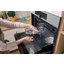 При установке духового шкафа в тумбу необходим также зазор между прибором и полом не менее 8–10 см. Если же она устанавливается в колонну, следует убедиться, что при открывании дверцы в лицо не будет ударять горячий воздух, а панель управления легко доступна. Кроме того, необходимо обеспечить свободный доступ ко всем розеткам и кабелям — они не должны размещаться непосредственно за задней стенкой духового шкафа.