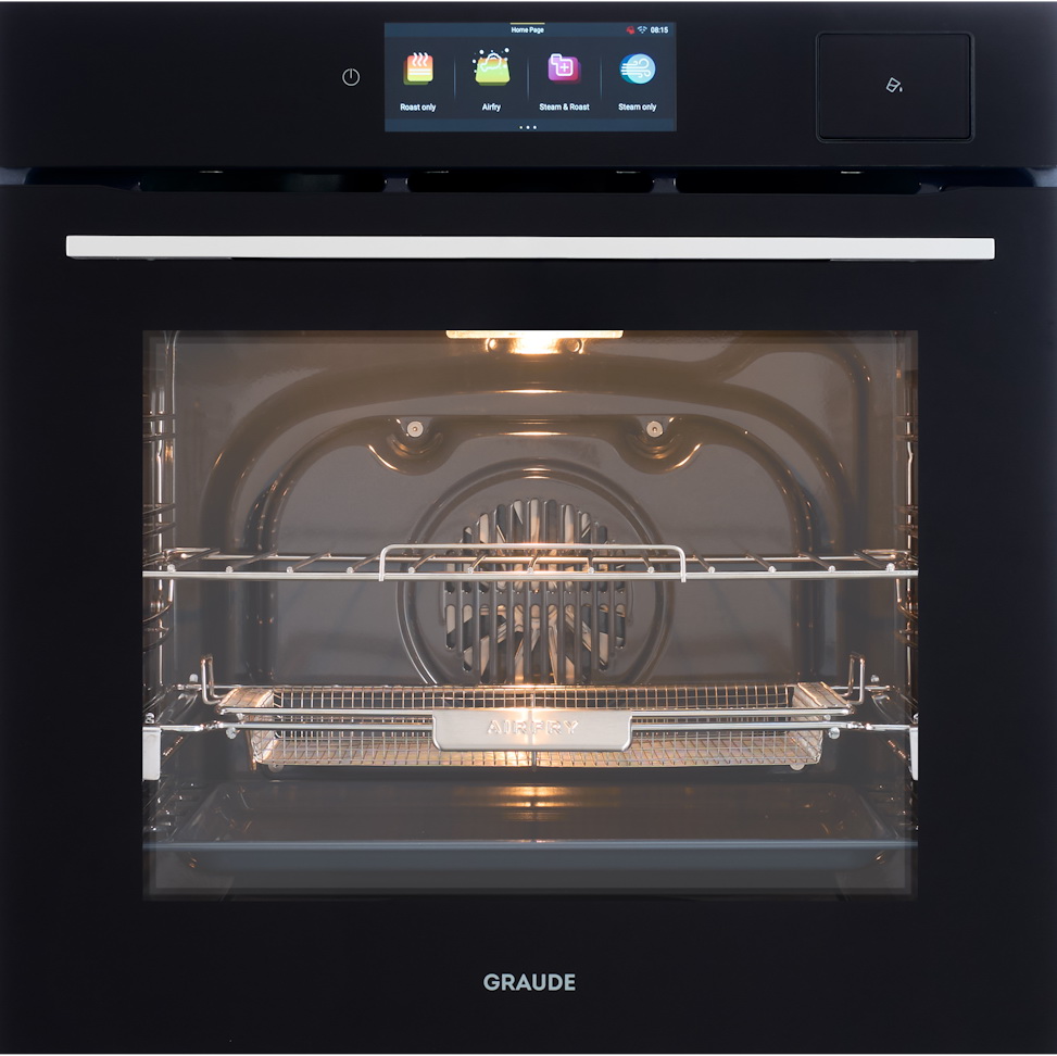 Количество режимов работы в духовом шкафу Грауде: 10. В число доступных программ входят: классический нагрев, верхний нагрев, конвекция, дополнительное использование пара, гриль для создания хрустящей корочки, пицца, сушка для овощей и фруктов, и другие. Помимо основных программ воспользуйтесь специальными возможностями этого прибора: подогревом посуды для настоящей ресторанной сервировки; поддержанием температуры в камере на определенном уровне, чтобы блюда не остывали; и другими.