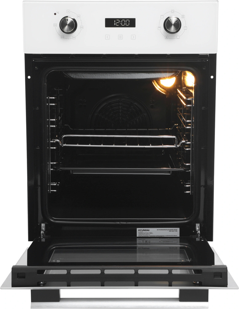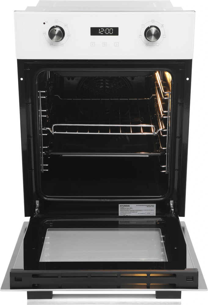 Количество режимов работы в духовом шкафу Хендай: 6. В число доступных программ входят: классический нагрев, нижний нагрев, конвекция, гриль для создания хрустящей корочки, и другие. Тип гриля в этой модели — электрический.