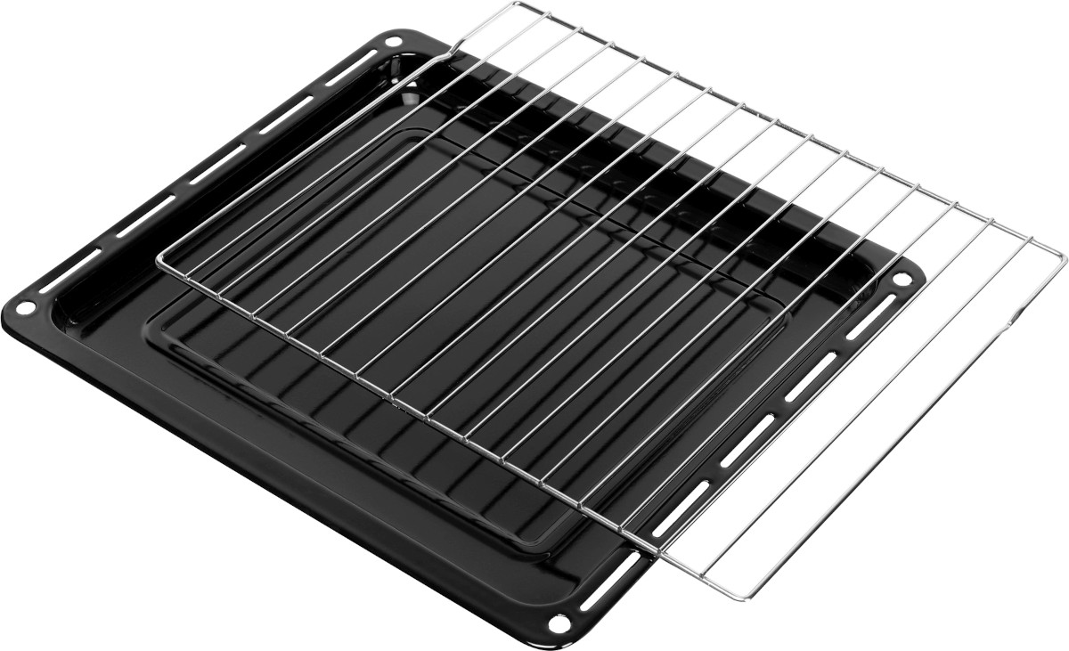 В стандартную комплектацию любого духового шкафа входят один или два противня — эмалированных или с антипригарным покрытием — и решетка. Единственный противень, как правило, имеет низкие бортики и предназначается для приготовления выпечки. Если духовка комплектуется двумя противнями, то второй отличается более высокими бортиками — его можно использовать для запекания мяса, птицы, овощных блюд. На решетке в духовке, не оснащенной грилем, обычно устанавливаются формы для запекания — стальные, керамические или стеклянные. В духовках премиум-класса количество противней может быть увеличено: к стандартному комплекту добавляются противни с перфорацией для мяса, специальные поддоны для сбора выделившегося сока.