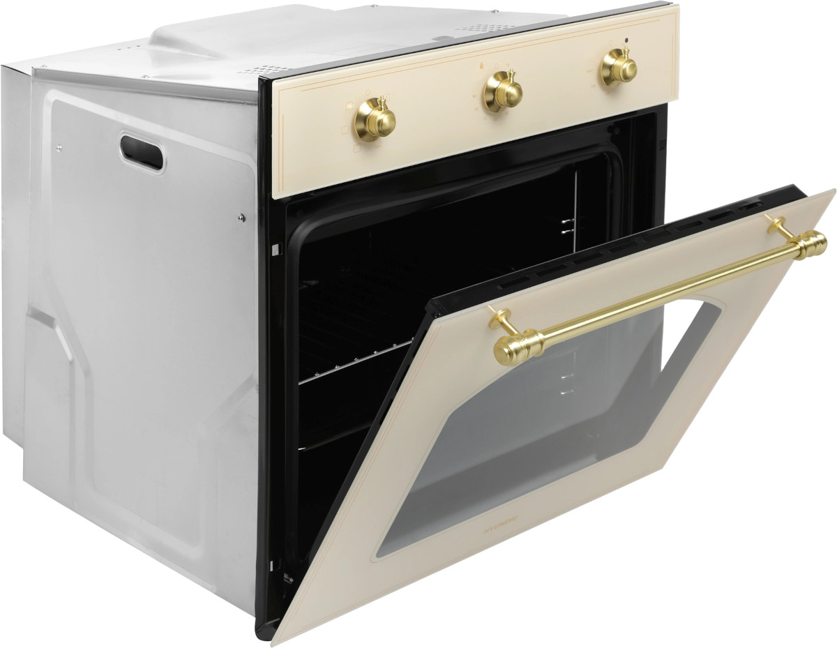Объем рабочей камеры определяется прежде всего габаритами прибора. Глубина духовок обычно составляет 55–59 см, высота чаще всего принимает два значения — 45 см или 60 см, так что в большей степени объем зависит от ширины. В настоящее время производители выпускают несколько вариантов духовок по ширине и высоте: стандартные шириной и высотой 60 см, компактные шириной 60 см и высотой 45 см, узкие — 45×60 см, широкие — 90×60 см и широкие компактные — 90×45 см. Ряд фирм предлагает также духовки нестандартных размеров.