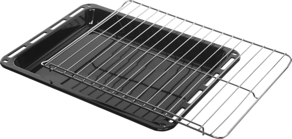 В стандартную комплектацию любого духового шкафа входят один или два противня — эмалированных или с антипригарным покрытием — и решетка. Единственный противень, как правило, имеет низкие бортики и предназначается для приготовления выпечки. Если духовка комплектуется двумя противнями, то второй отличается более высокими бортиками — его можно использовать для запекания мяса, птицы, овощных блюд. На решетке в духовке, не оснащенной грилем, обычно устанавливаются формы для запекания — стальные, керамические или стеклянные. В духовках премиум-класса количество противней может быть увеличено: к стандартному комплекту добавляются противни с перфорацией для мяса, специальные поддоны для сбора выделившегося сока.