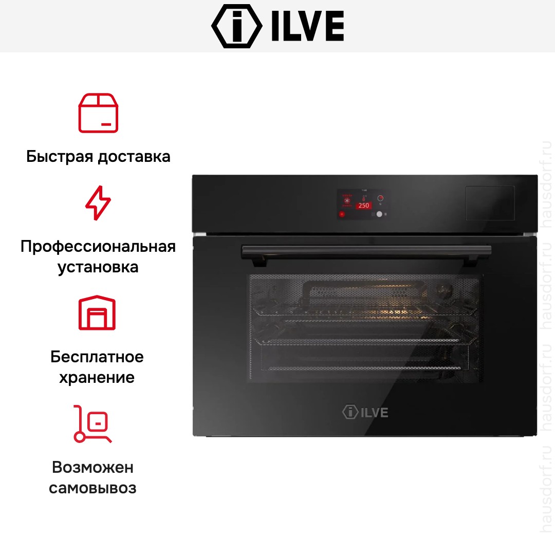 Количество режимов работы в духовом шкафу Илве: 10. В число доступных программ входят: конвекция, приготовление с помощью микроволн, дополнительное использование пара, гриль для создания хрустящей корочки, и другие. Тип гриля в этой модели — электрический.