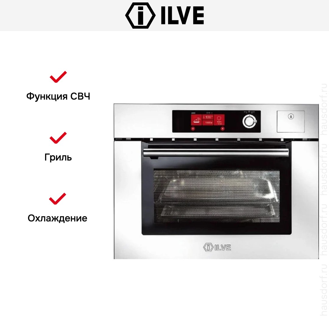 Количество режимов работы в духовом шкафу Илве: 10. В число доступных программ входят: конвекция, приготовление с помощью микроволн, дополнительное использование пара, гриль для создания хрустящей корочки, и другие. Тип гриля в этой модели — электрический.