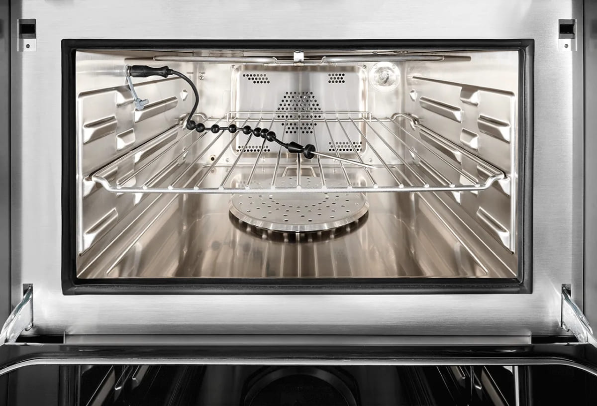Горячий воздух с температурой от 140 до 250 градусов позволяет создать хрустящую румяную корочку, а пар придает особую сочность внутренней части блюда при сохранении всех полезных веществ. В большинстве духовых шкафов пар, температура которого составляет 100°C, подается в рабочую камеру через определенные интервалы.
