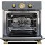Духовой шкаф выполнен в ретро-стиле и покрыт серой эмалью, которая подчеркивает фактуру фронтальной панели. Такая модель идеально впишется в аутентичный интерьер или будет работать как контрастный элемент в стандартном современном гарнитуре.
