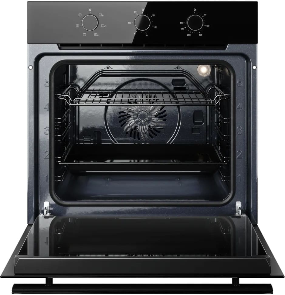Особенности дизайна и внешней панели управления — также важный пункт при выборе духовки на кухню. В данной модели нужно обратить внимание на цвет — черный, Механическая панель управления позволяет быстро разобраться в настройке программ и не требует чрезмерных усилий.
