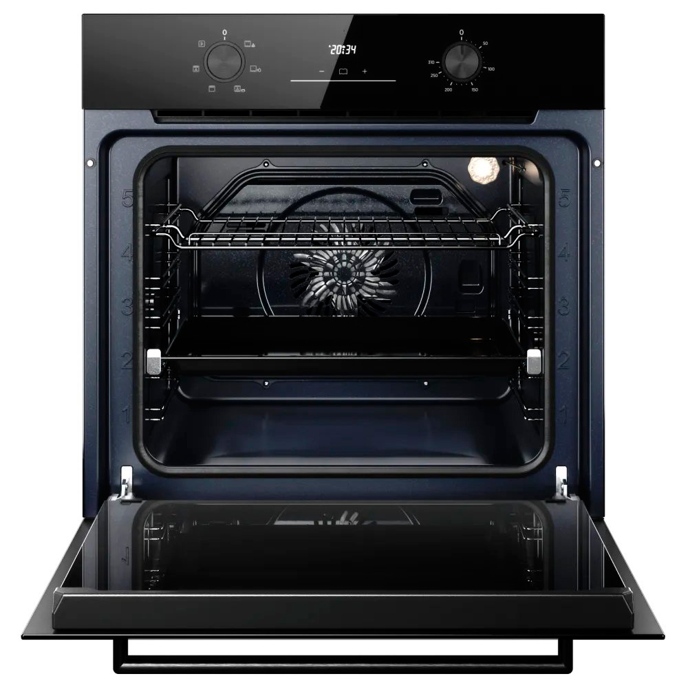 Особенности дизайна и внешней панели управления — также важный пункт при выборе духовки на кухню. В данной модели нужно обратить внимание на цвет — черный,