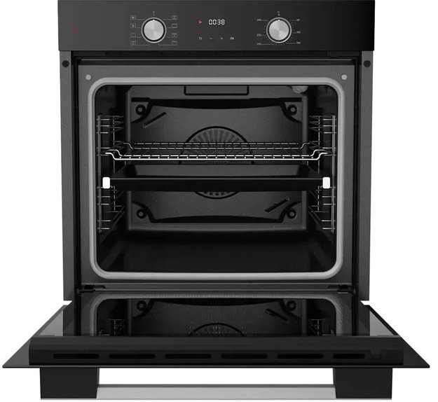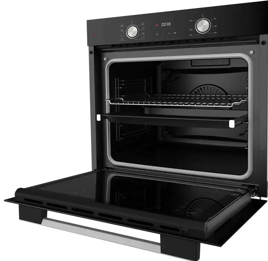 Особенности дизайна и внешней панели управления — также важный пункт при выборе духовки на кухню. В данной модели нужно обратить внимание на цвет — черный,
