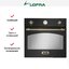 Духовой шкаф Lofra из серии Dolcevita черного цвета, с латунной фурнитурой. Из десяти режимов работы самыми востребованными являются верхний или нижний нагрев, конвекция и электрический гриль. У духовки «холодная дверца», поэтому в ней комфортно и безопасно готовить. Внутри эмаль легкой очистки, к которой не прилипают загрязнения.