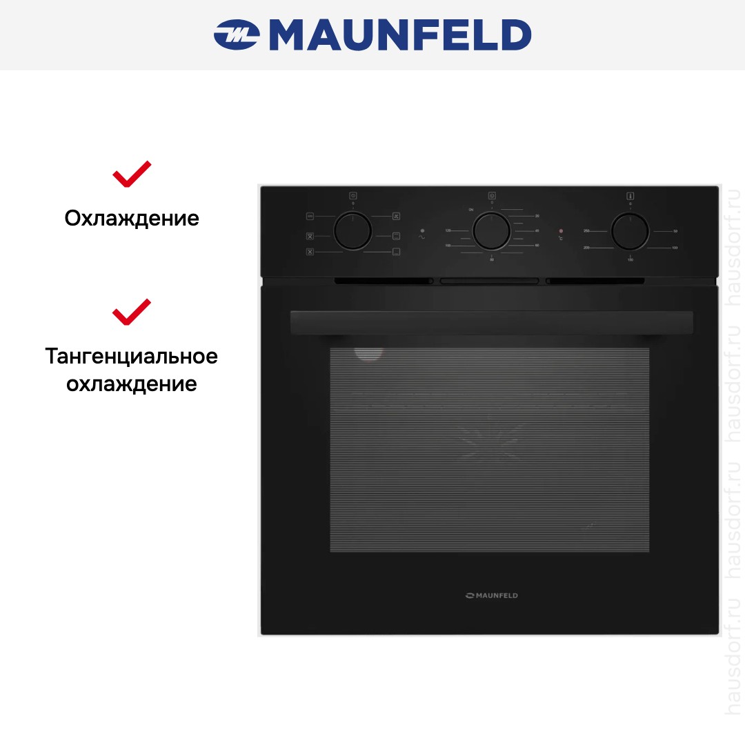 Maunfeld AEOF6060B2 — встраиваемая электрическая печь с набором всех необходимых функций, созданная для тех, кто ценит в технике практичность и не желает переплачивать. Лицевая часть выполнена в глубоком черном цвете с матовой фурнитурой того же оттенка, что создает ощущение основательности и безопасности. Откидывающаяся дверца с двумя слоями стекла гарантирует удобный доступ к внутренней части и отличный обзор.