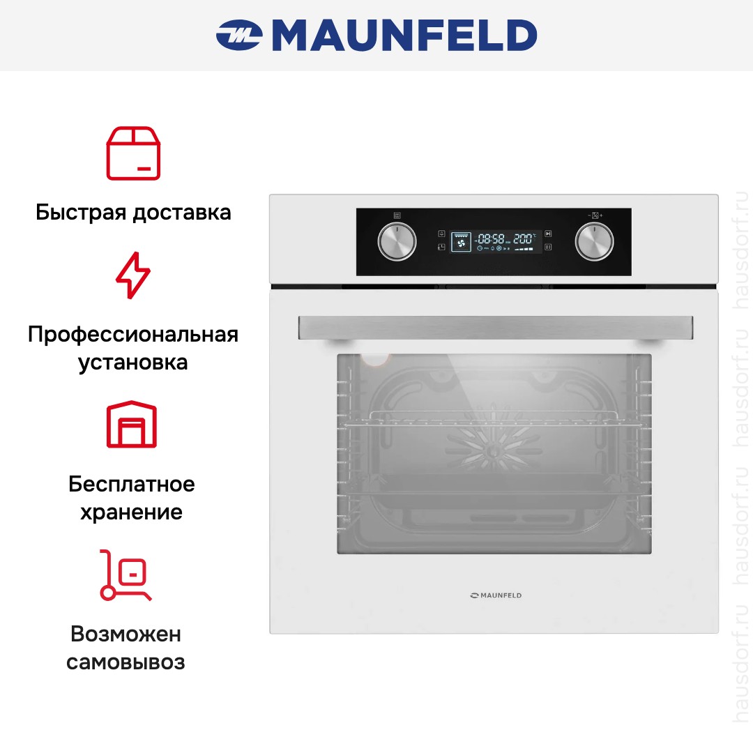 Maunfeld AEOH6062W — встраиваемая электрическая духовка, созданная для тех, кто ценит порядок и практичность на кухне.