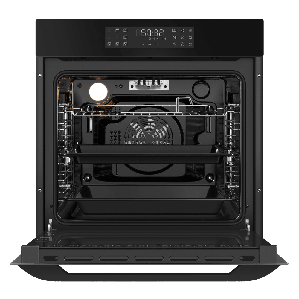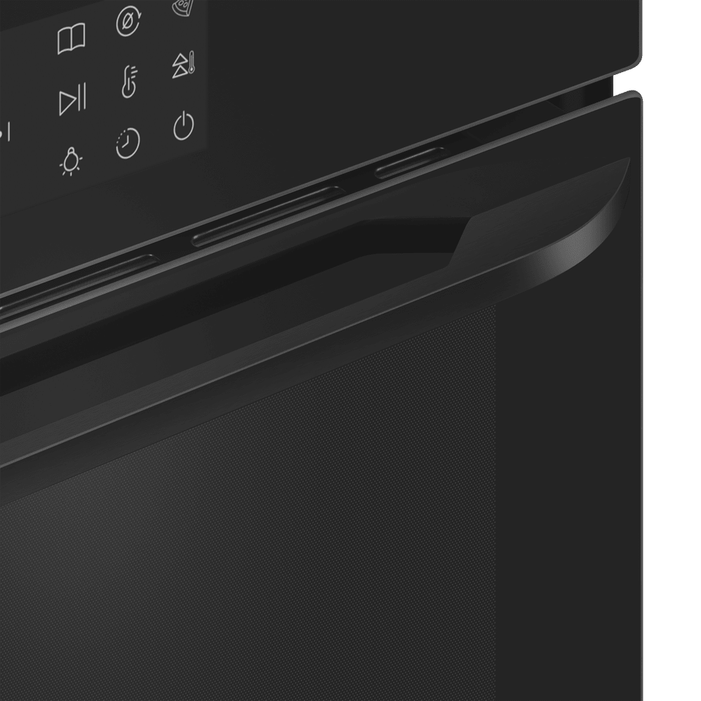 Особенности дизайна и внешней панели управления — также важный пункт при выборе духовки на кухню. В данной модели нужно обратить внимание на цвет — черный, охлаждение двери, чтобы поверхность и мебель вокруг не нагревались.