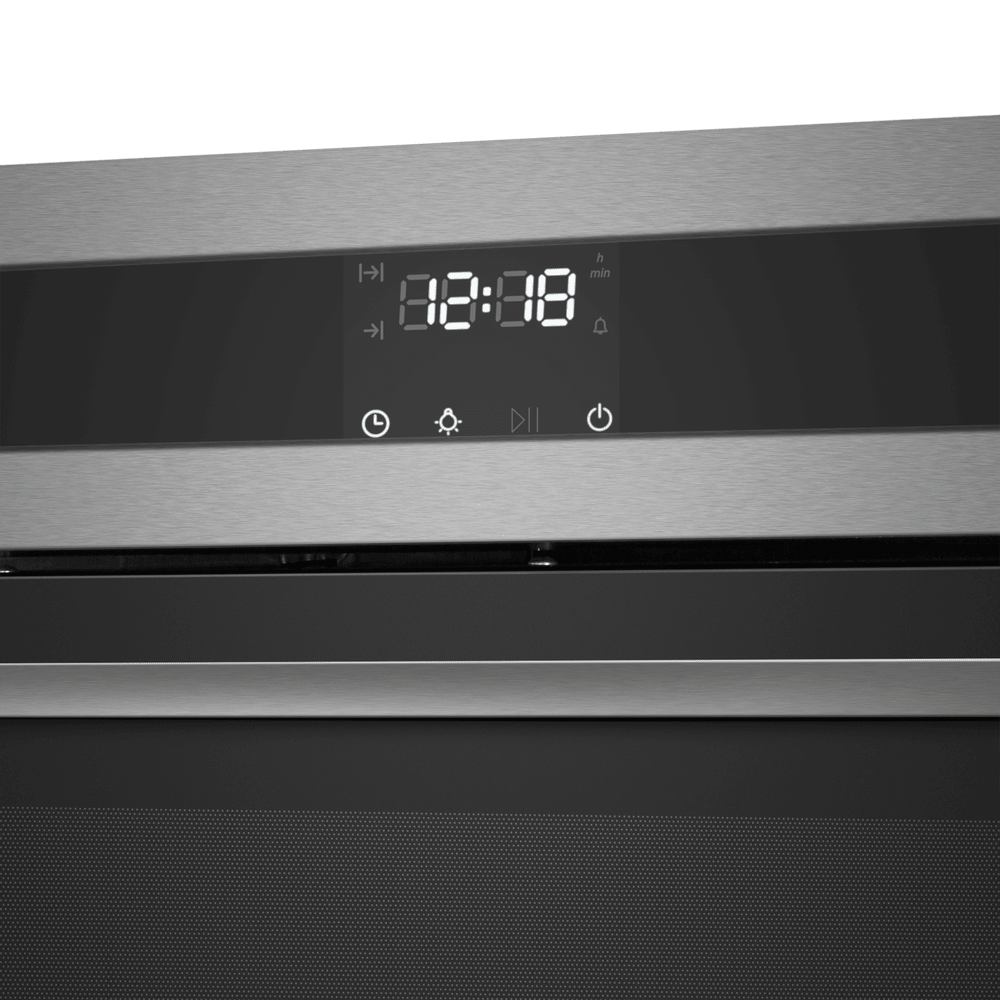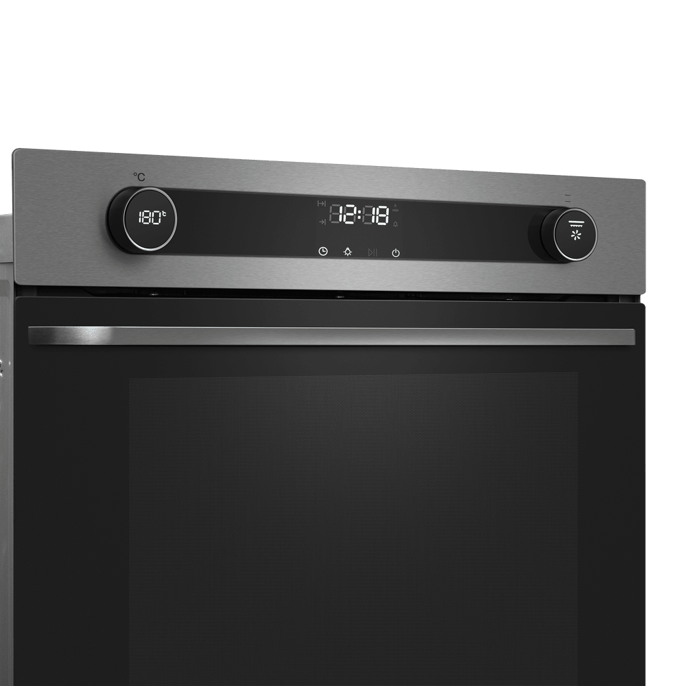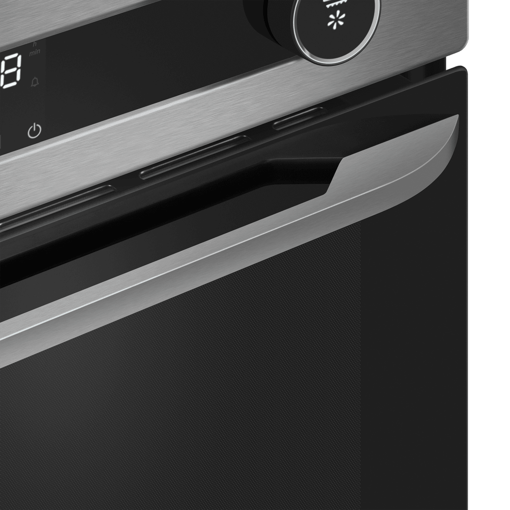 Особенности дизайна и внешней панели управления — также важный пункт при выборе духовки на кухню. В данной модели нужно обратить внимание на цвет — нержавеющая сталь,