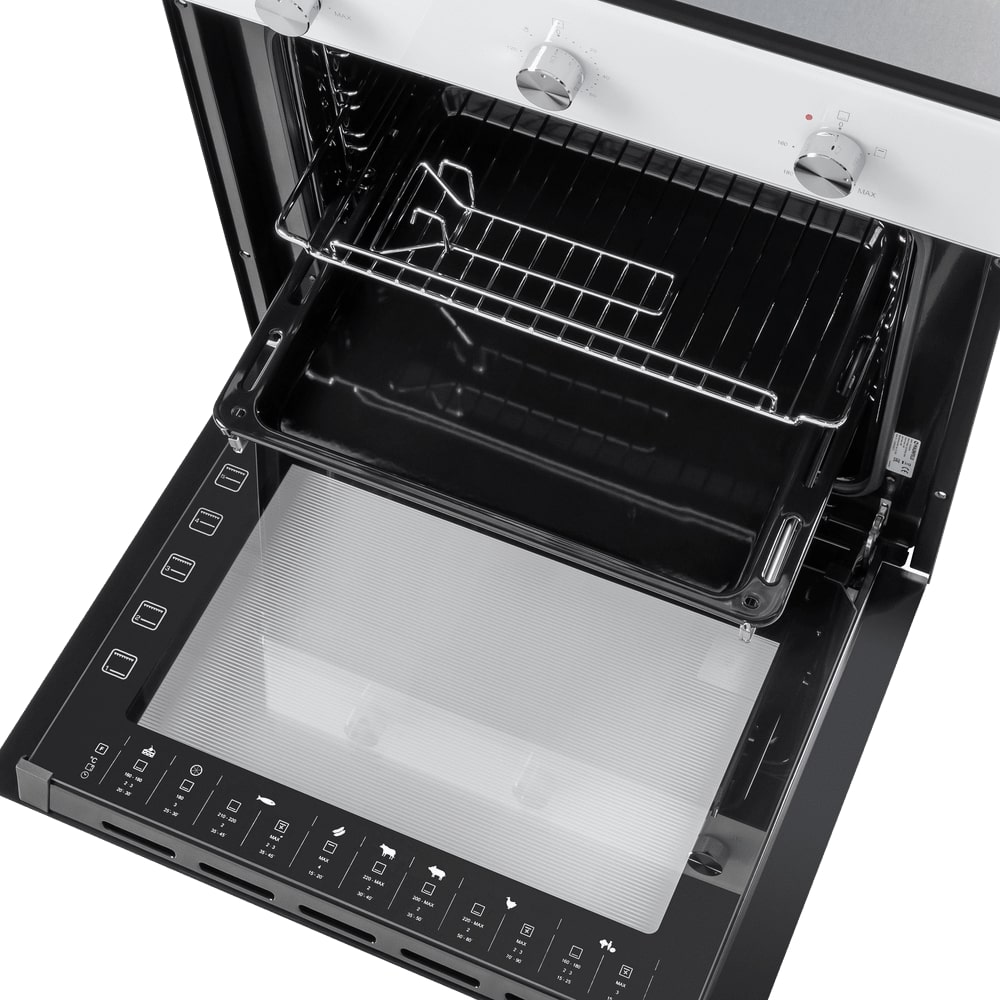 В стандартную комплектацию любого духового шкафа входят один или два противня — эмалированных или с антипригарным покрытием — и решетка. Единственный противень, как правило, имеет низкие бортики и предназначается для приготовления выпечки. Если духовка комплектуется двумя противнями, то второй отличается более высокими бортиками — его можно использовать для запекания мяса, птицы, овощных блюд. На решетке в духовке, не оснащенной грилем, обычно устанавливаются формы для запекания — стальные, керамические или стеклянные. В духовках премиум-класса количество противней может быть увеличено: к стандартному комплекту добавляются противни с перфорацией для мяса, специальные поддоны для сбора выделившегося сока.