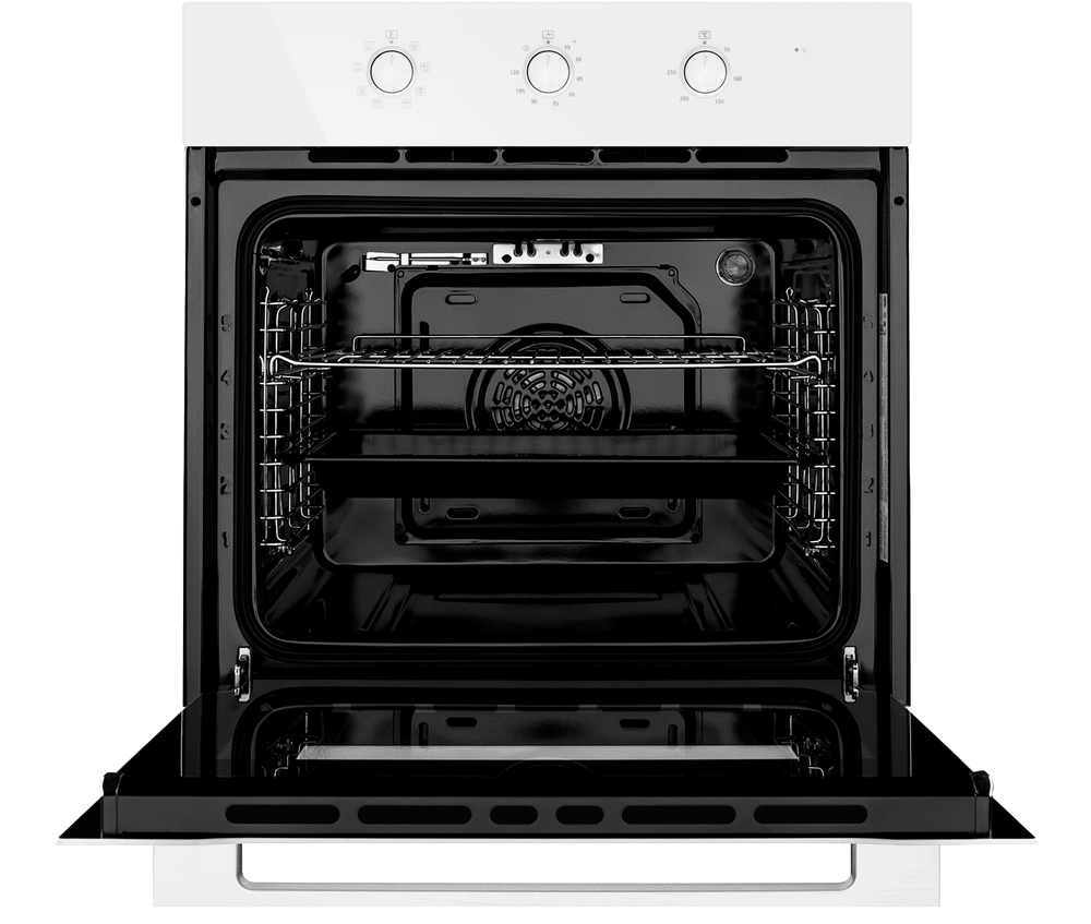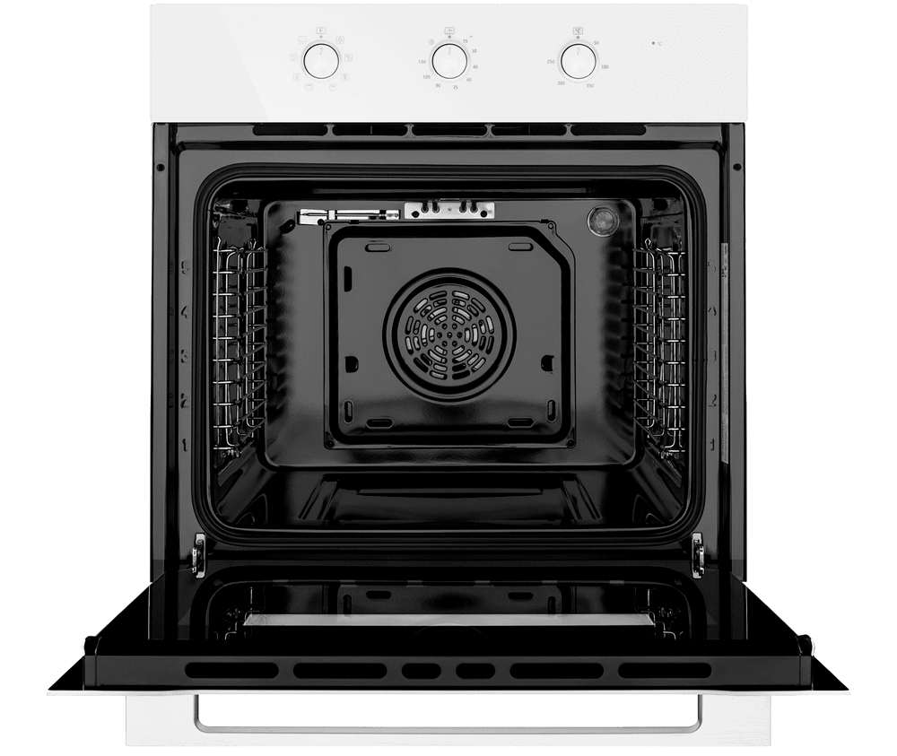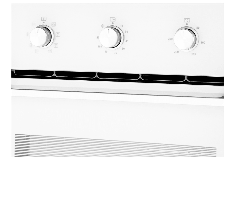 Особенности дизайна и внешней панели управления — также важный пункт при выборе духовки на кухню. В данной модели нужно обратить внимание на цвет — белый, охлаждение двери, чтобы поверхность и мебель вокруг не нагревались. Механическая панель управления позволяет быстро разобраться в настройке программ и не требует чрезмерных усилий.