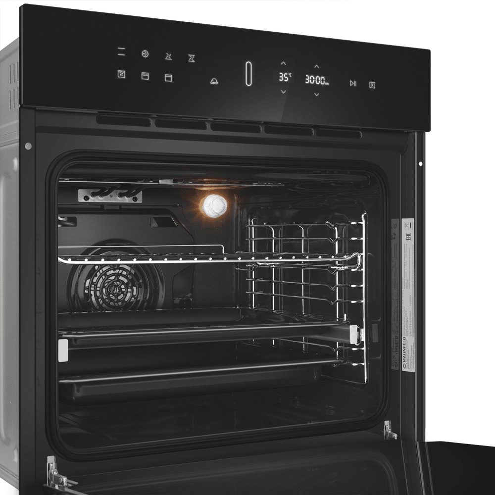 Готовьте свои лучшие блюда и пробуйте новые рецепты с духовым шкафом Maunfeld MEOH709DB! Стандартные размеры и большой объем внутренней камеры — выбор тех, кто много готовит для семьи или частых праздничных встреч с друзьями. Желательно заранее продумать расположение такой модели в кухонном гарнитуре.