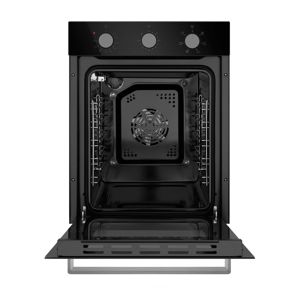 Как известно, стандартная ширина кухонной тумбы составляет около 60 см — поэтому за стандартную ширину встраиваемого духового шкафа принимают 59,5 см. Такие духовки имеют по 3–4 уровня приготовления, в них можно приготовить достаточно объемные блюда. Минимальное значение ширины духовки также соотносится с размерами тумбы для встраивания — оно составляет 44–45 см. Это хороший выбор для небольшой кухни, однако узкие духовые шкафы имеют свои недостатки — в частности, в них невозможно приготовить большой пирог или торт, запечь целый окорок, индейку или большую рыбу.