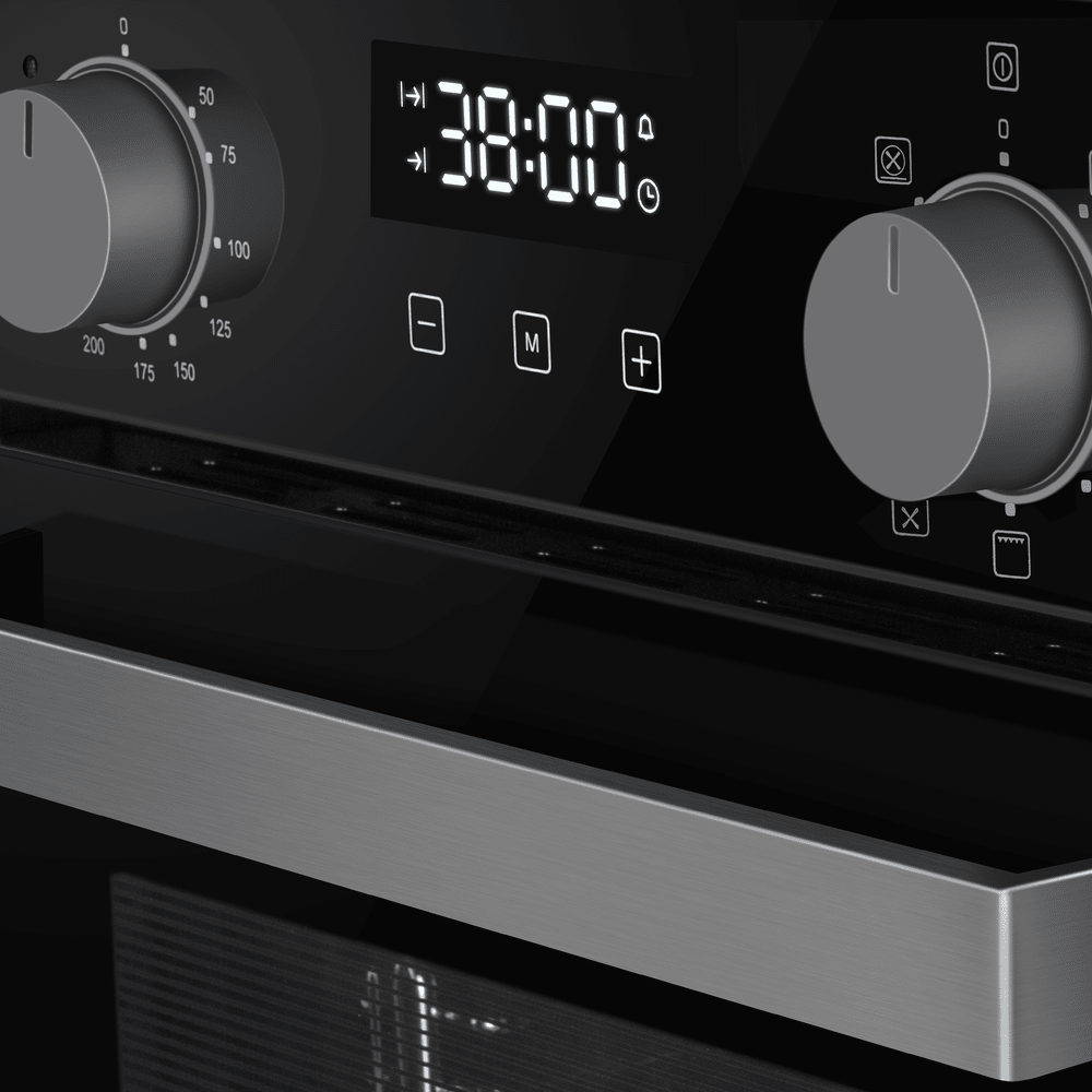 Особенности дизайна и внешней панели управления — также важный пункт при выборе духовки на кухню. В данной модели нужно обратить внимание на цвет — черный,