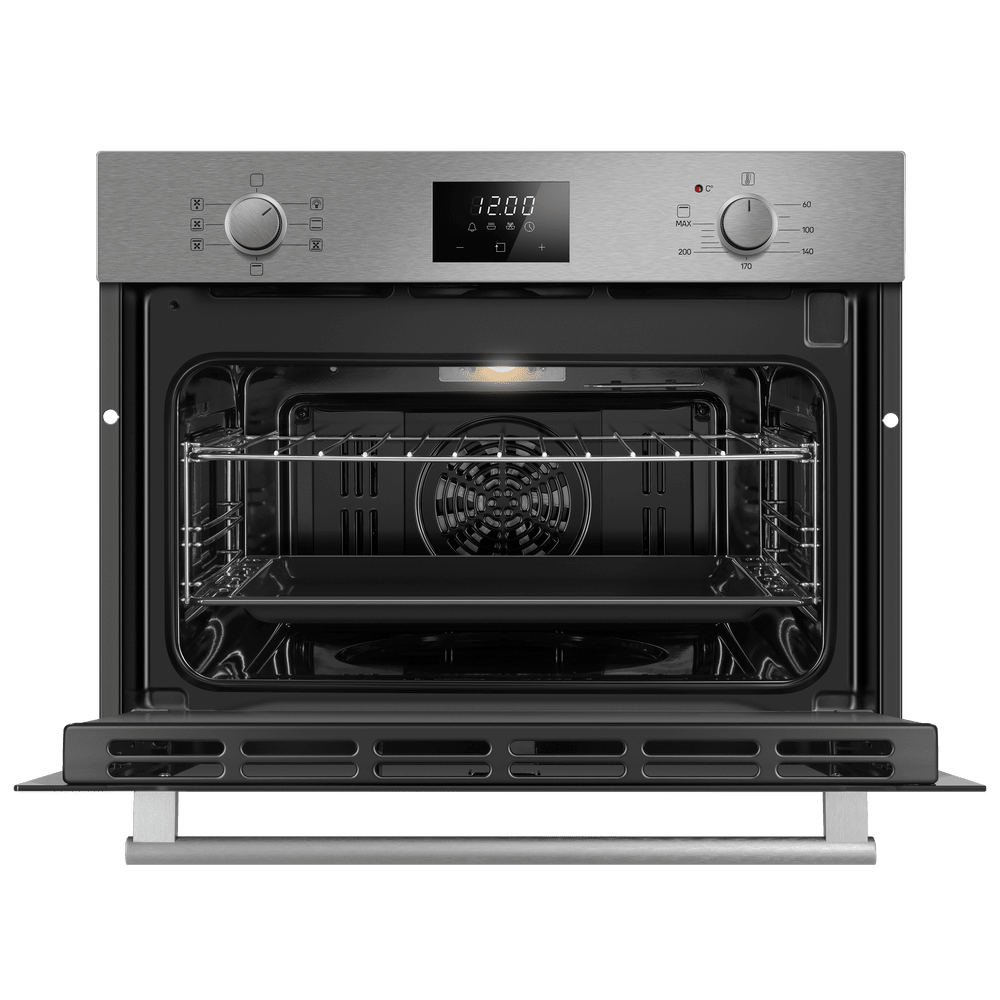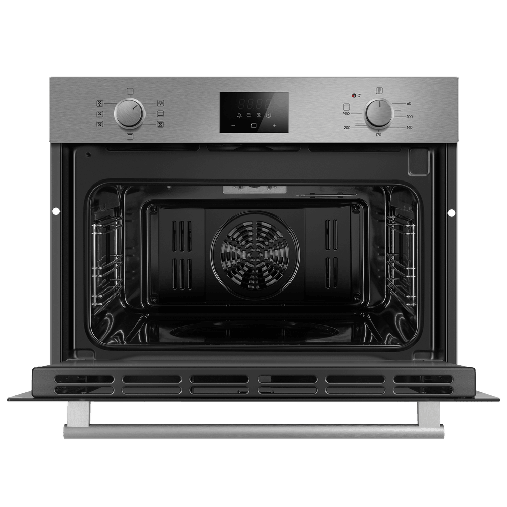 Компактные духовки — оптимальный выбор для тех, кто хочет питаться вкусно и разнообразно, но не располагает кухней большой площади. Подобные модели подойдут также для небольших семей или для тех, кто привык готовить достаточно редко. Объем рабочей камеры у компактных моделей не превышает 55 литров. Ширина их остается стандартной — около 60 см, высота составляет обычно 45 см, а энергопотребление и мощность несколько меньше, чем у полноразмерных моделей. Компактные духовки имеют до трех уровней приготовления.