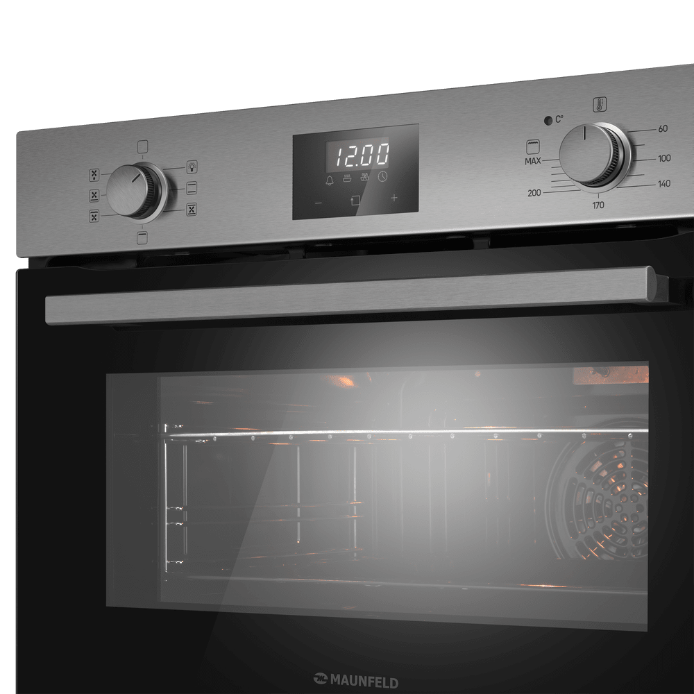 Готовьте свои лучшие блюда и пробуйте новые рецепты с духовым шкафом Maunfeld AMCO537S! Стандартные размеры и большой объем внутренней камеры — выбор тех, кто много готовит для семьи или частых праздничных встреч с друзьями. Желательно заранее продумать расположение такой модели в кухонном гарнитуре.