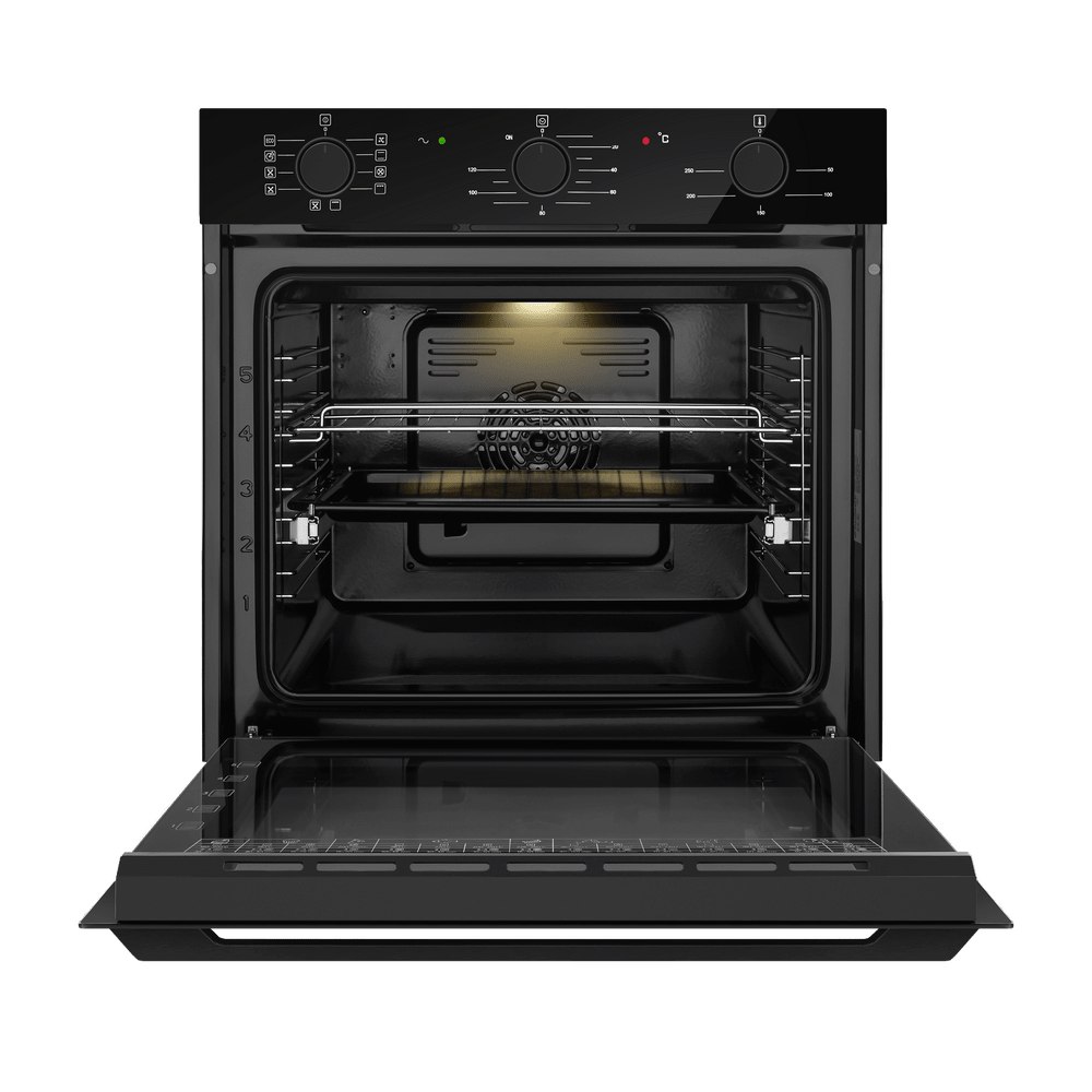 Как известно, стандартная ширина кухонной тумбы составляет около 60 см — поэтому за стандартную ширину встраиваемого духового шкафа принимают 59,5 см. Такие духовки имеют по 3–4 уровня приготовления, в них можно приготовить достаточно объемные блюда. Минимальное значение ширины духовки также соотносится с размерами тумбы для встраивания — оно составляет 44–45 см. Это хороший выбор для небольшой кухни, однако узкие духовые шкафы имеют свои недостатки — в частности, в них невозможно приготовить большой пирог или торт, запечь целый окорок, индейку или большую рыбу.