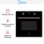 Количество режимов работы в духовом шкафу Мидеа: 9. В число доступных программ входят: классический нагрев, нижний нагрев, конвекция, гриль для создания хрустящей корочки, и другие. Тип гриля в этой модели — электрический.