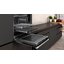 В верхней части фасада расположена электронная панель управления с поворотными переключателями, сенсорными кнопками TouchControl и цветным TFT-дисплеем размером 3,7″. Здесь же находятся электронные часы с таймером, позволяющим автоматически отключить нагрев по истечении заданного времени или запрограммировать время окончания приготовления. На все стенки камеры нанесено каталитическое покрытие Eco Clean, разлагающее все загрязнения на воду и золу. В дверце установлено сплошное легко очищаемое стекло. На двух уровнях предусмотрены телескопические направляющие полного выдвижения с фиксатором для удобного извлечения блюд из камеры.
