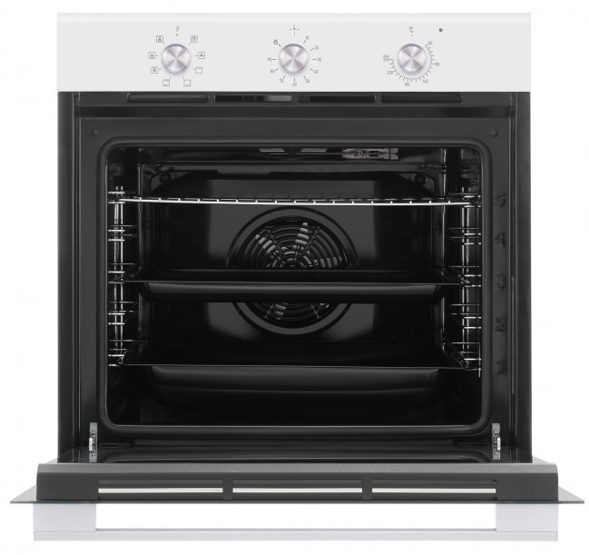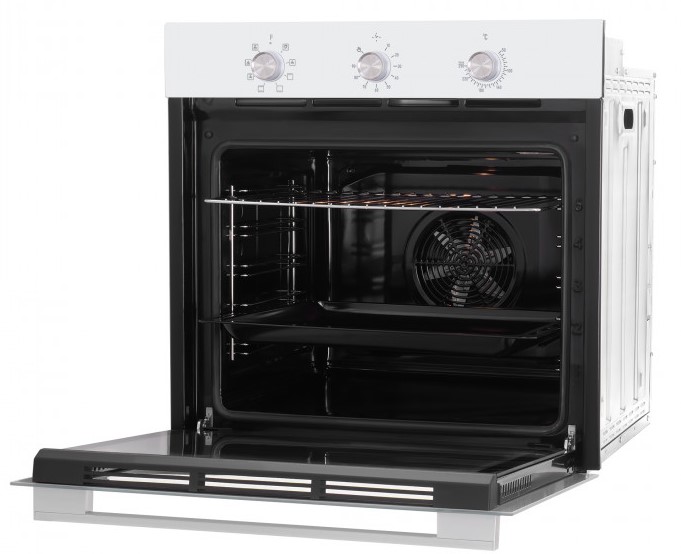 Особенности дизайна и внешней панели управления — также важный пункт при выборе духовки на кухню. В данной модели нужно обратить внимание на цвет — белый, Механическая панель управления позволяет быстро разобраться в настройке программ и не требует чрезмерных усилий.
